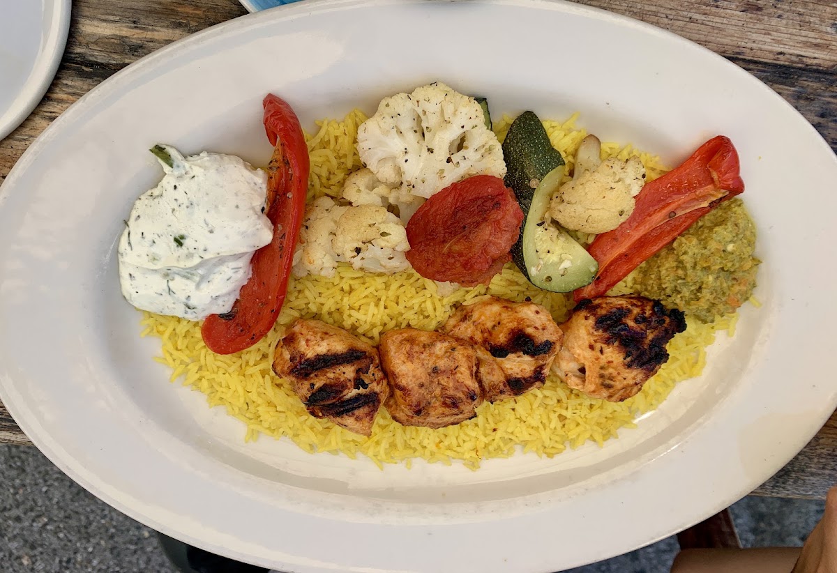 I was in the mood for some good Mediterranean dinner and finally stopped by this restaurant after walking by many times. and the dinner was amazing! we were seated fast, there are outside and indoors tables, we got a free appetizer on our table right away, the waters were refilled fast and they were in nice glasses too. the prices for the portions are definitely worth it, and the food was delicious. the meat was grilled very well, the rice was delicious, and the customer service was great. I heard them ask other customers how they feel about the food and it was a nice touch. the decor is very nice as well. Will be back again :)